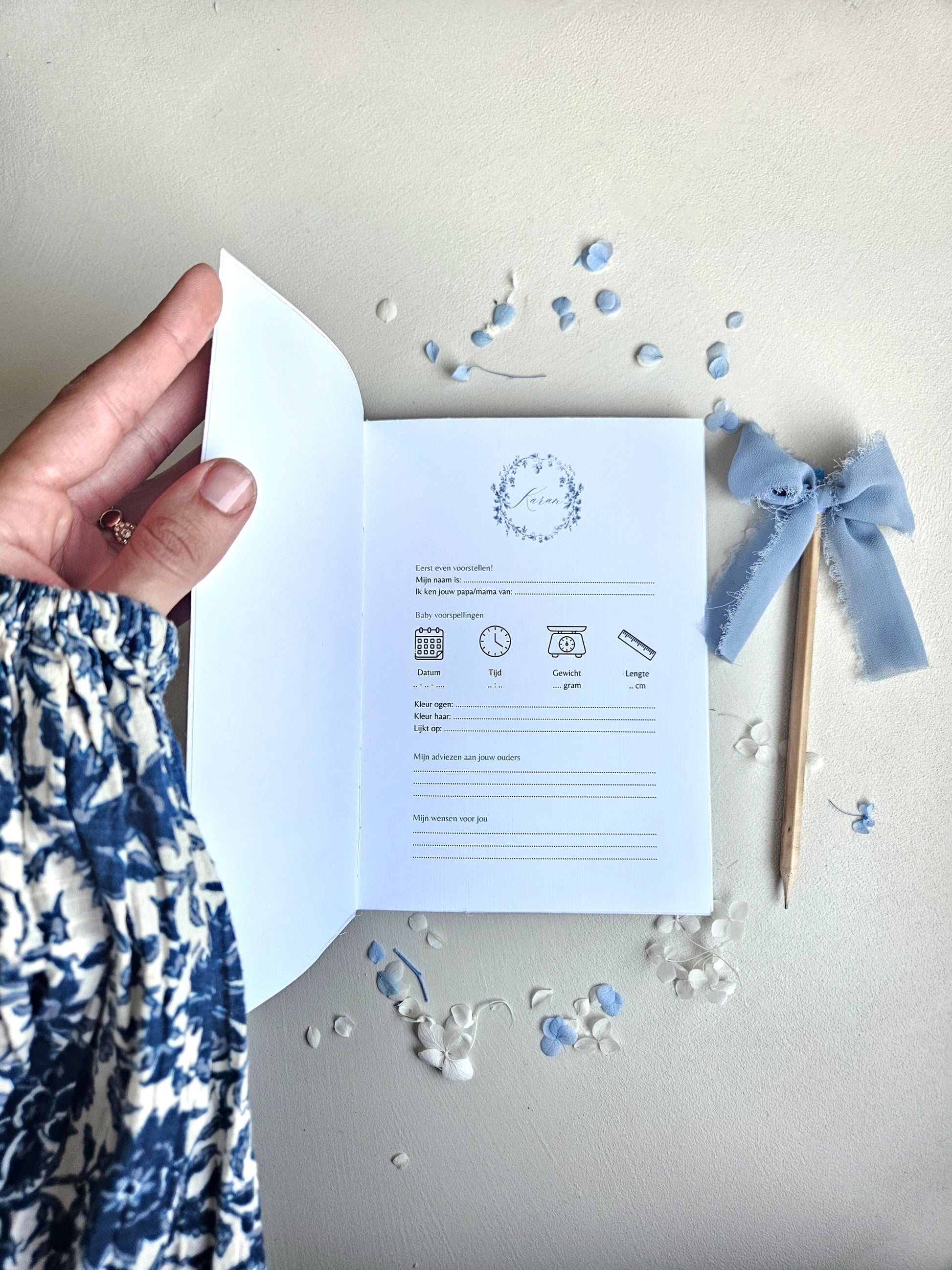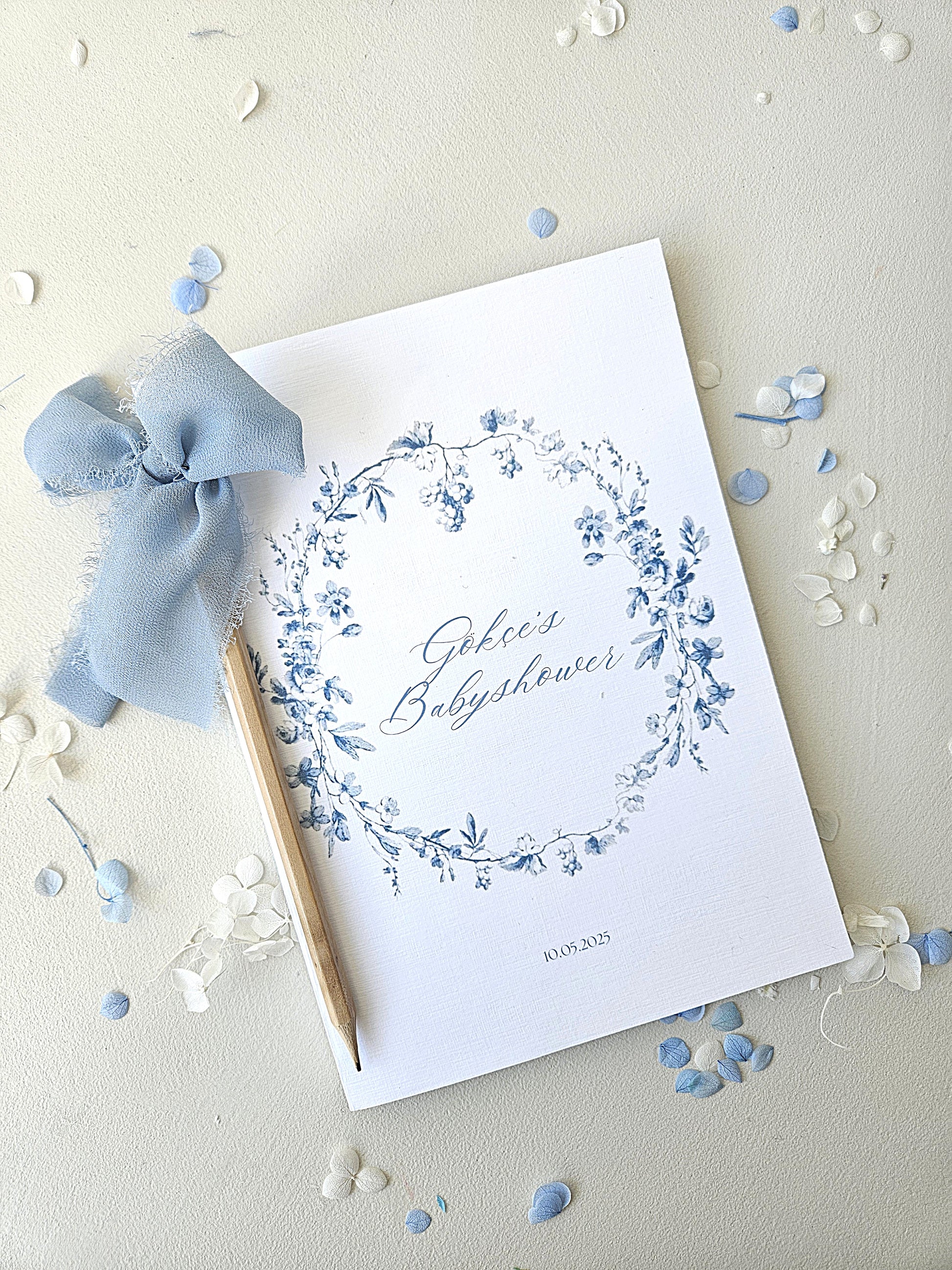 Bring fun and interaction to your baby shower with the quiz booklets from the Little Amsterdam collection. Decorated with classic flowers, bunches of grapes, and graceful leaves in a soft, traditional Dutch blue, these booklets are not only fun to fill in but also beautiful to keep. Perfect for baby showers or birth celebrations full of fun.