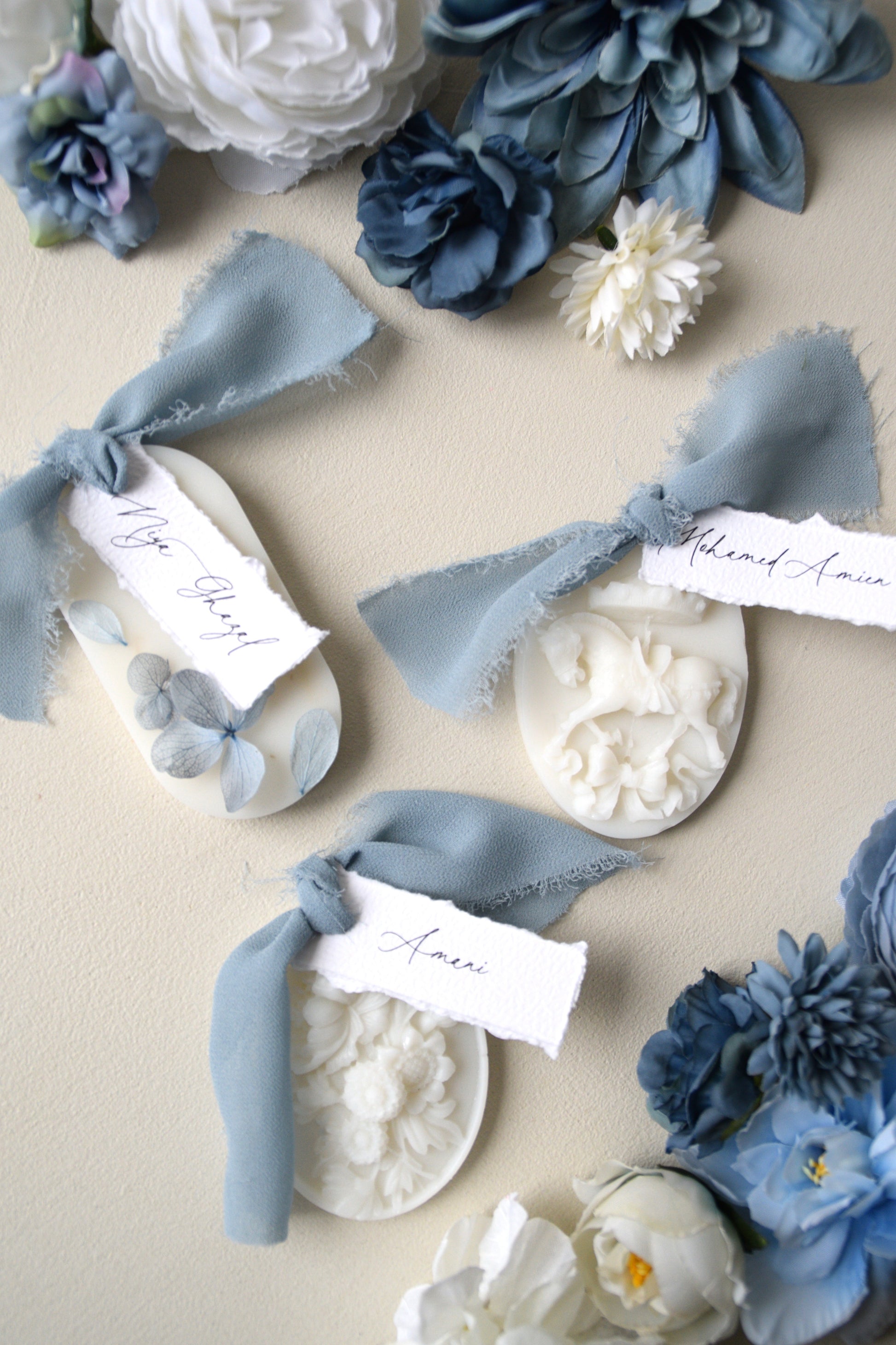 All soaps are enriched with a delicate baby scent, a hallmark of the Little Amsterdam collection. They are finished with a dusky blue chiffon ribbon and a personalized label, giving each thank-you gift a loving and personal touch.