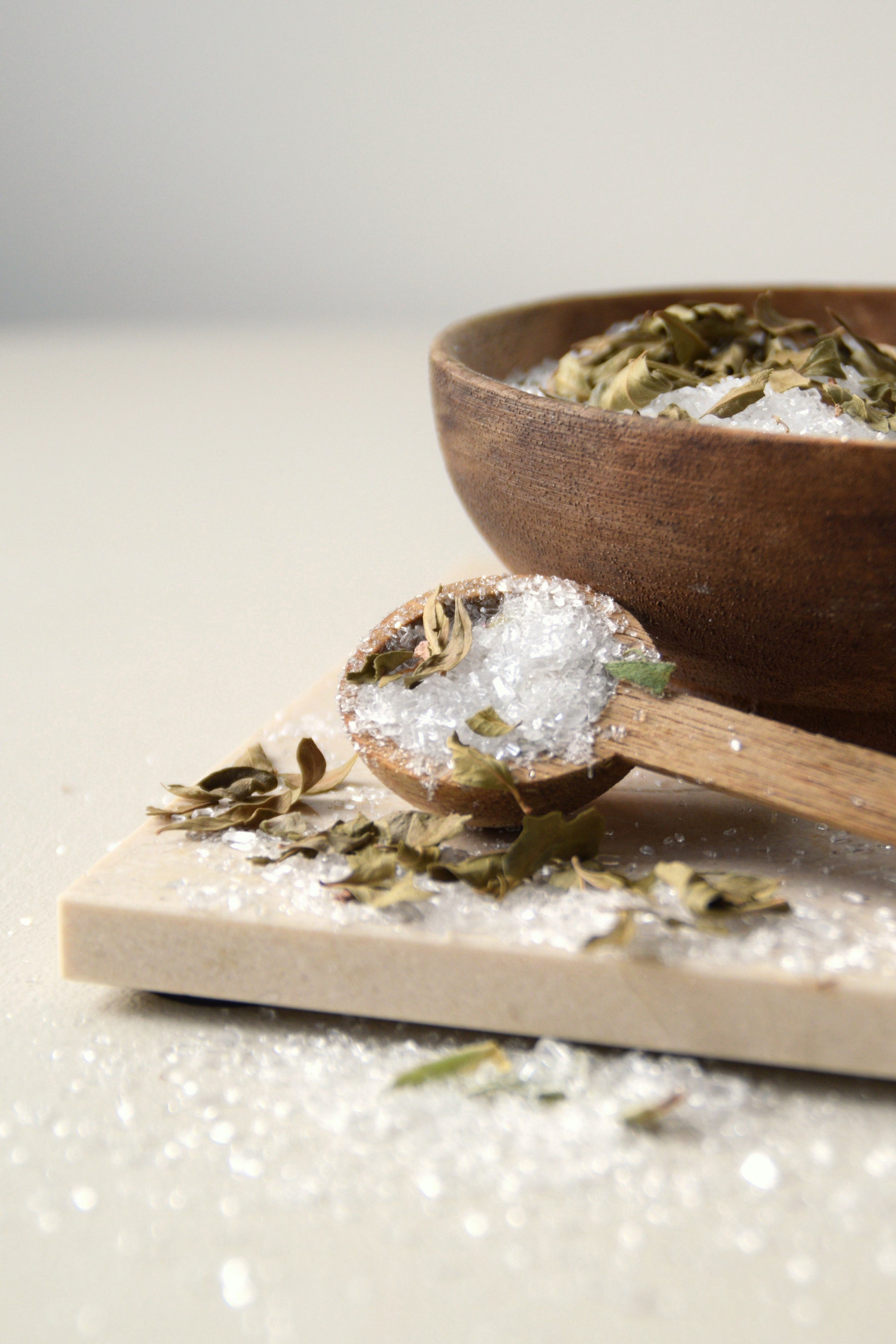 ✔ Jar with a cork lid, filled with bath salts, organic henna leaves and a subtle sandalwood scent.