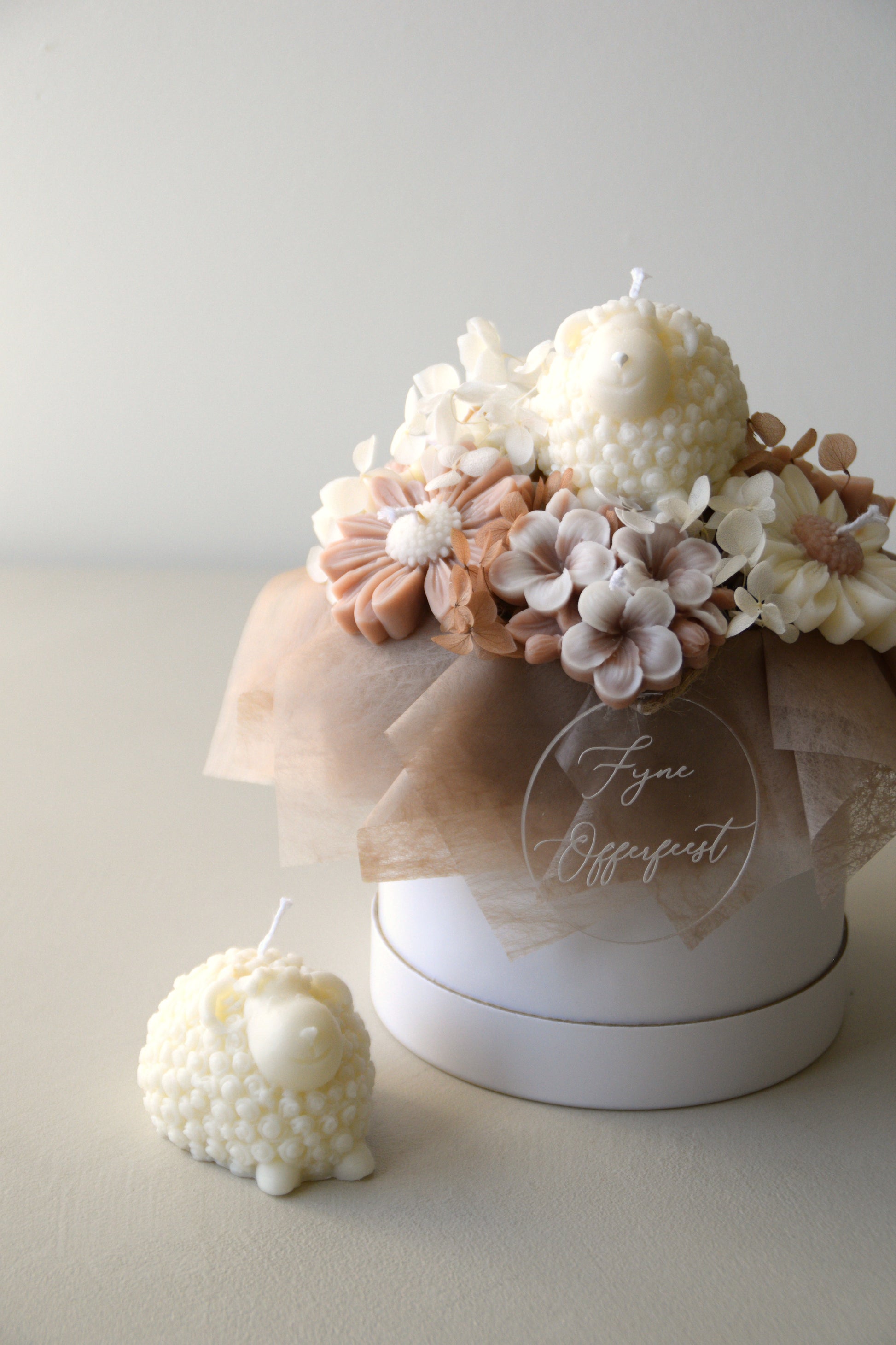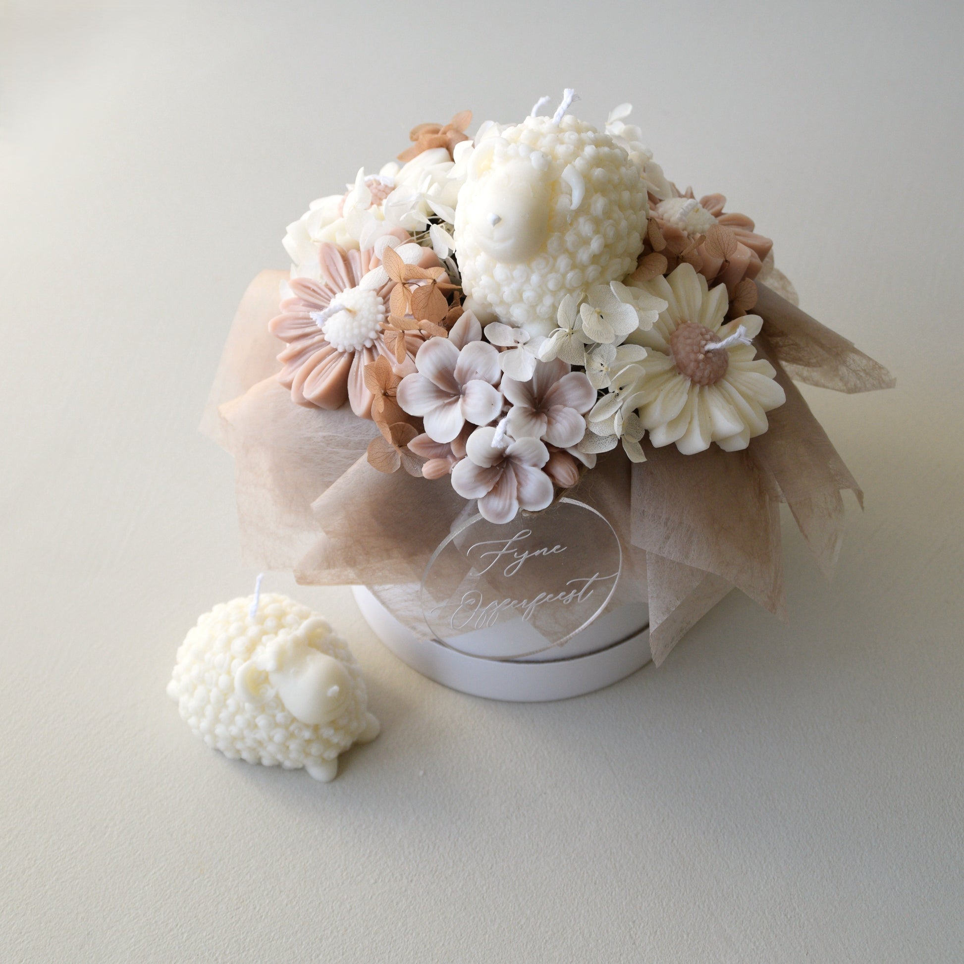 ✔ Combinatie van bloemkaarsen en een schaapkaars.