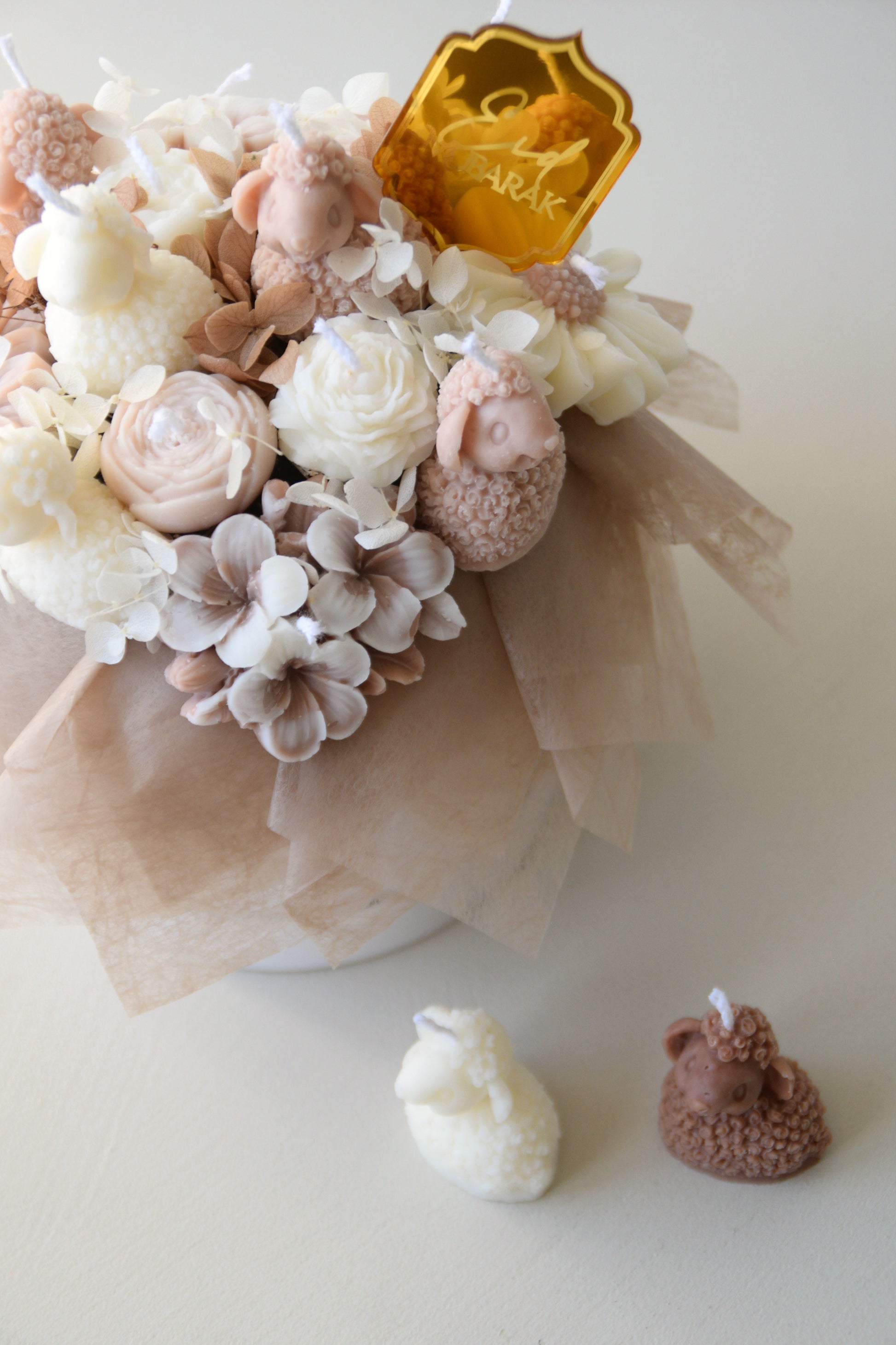 ✔ Combinatie van bloemkaarsen en lammetjes.